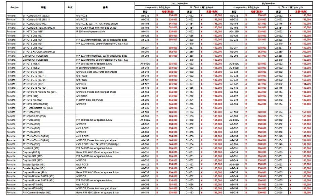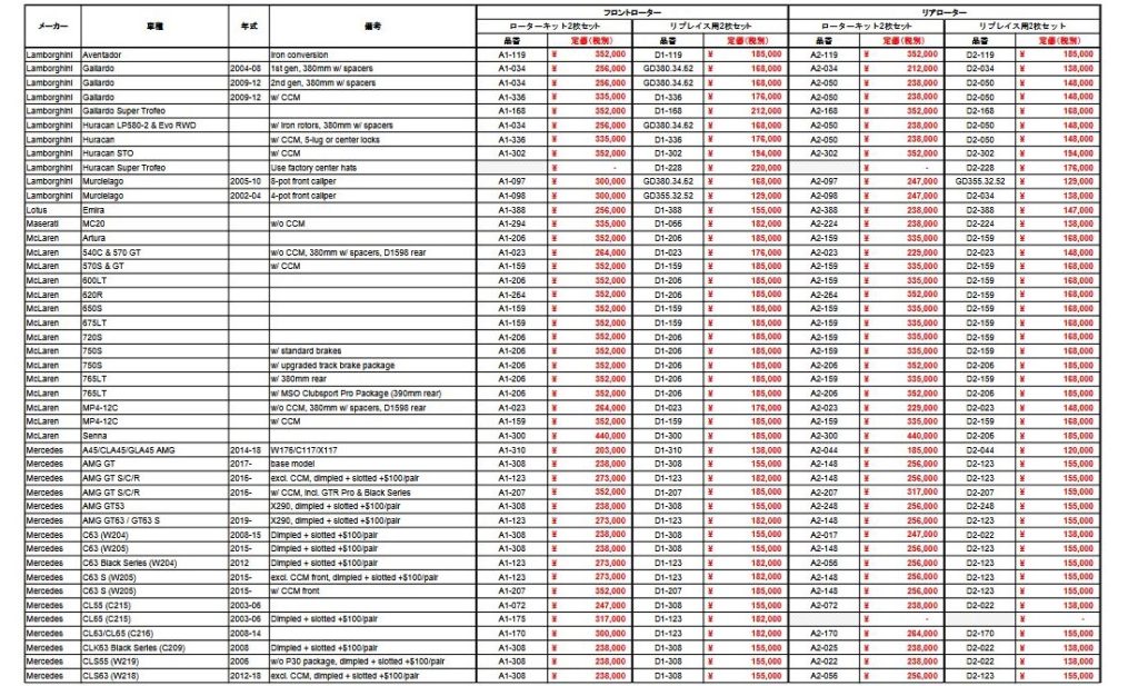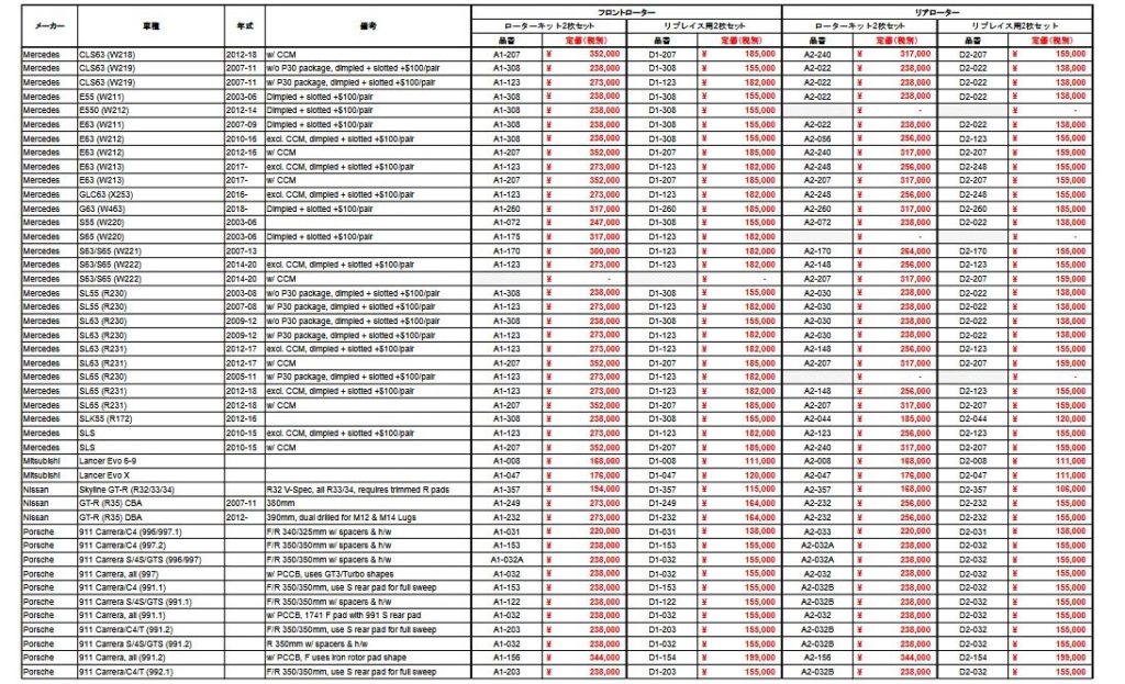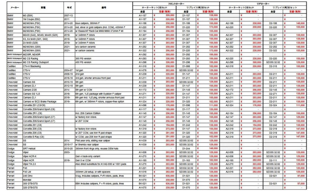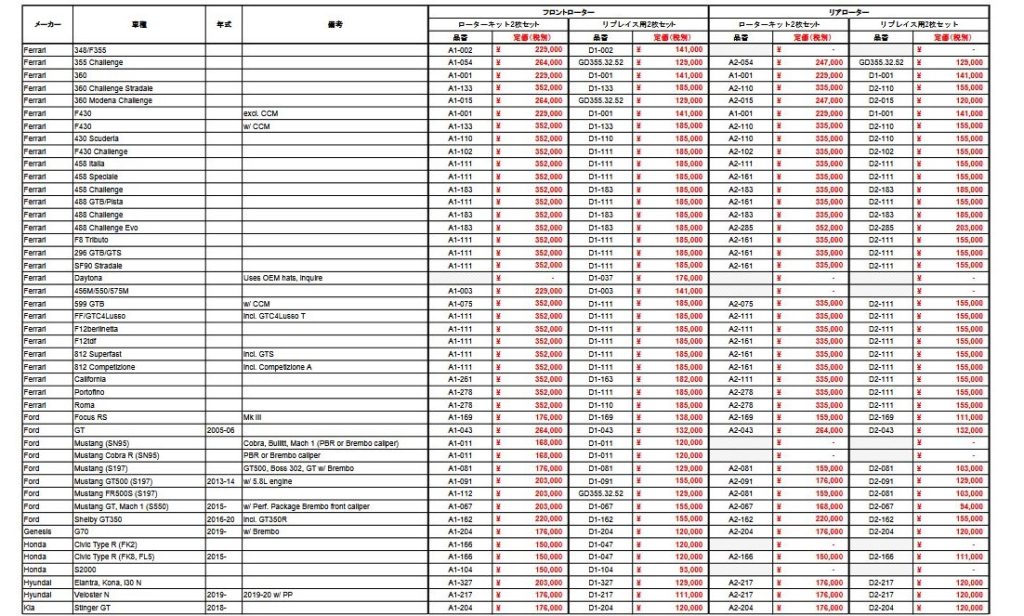 車種ごとのマッチングリスト【